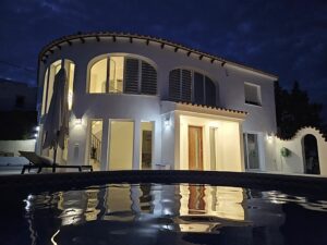 En exclusiva presentamos esta villa en Calpe, una propiedad única que combina modernidad, confort y el auténtico encanto mediterráneo. La fachada ha sido completamente reformada y pintada, con puerta principal de madera maciza y dos entradas de vehículos para máxima comodidad. La entrada principal destaca con una puerta de seguridad maciza de la más alta calidad, y las dos entradas para vehículos desde la calle cuentan con portales que aportan comodidad y máxima seguridad. La vivienda ofrece una planta baja totalmente reformada, moderna y luminosa, y una planta alta con estilo español tradicional, creando un hogar con carácter propio. Cuenta con cuatro dormitorios, dos baños completos y aproximadamente 305 m² construidos sobre una parcela de 852 m². Reformas y sistemas nuevos: fontanería, electricidad y ventilación; descalcificador y ósmosis en toda la casa; climatización frío/calor; sistema de agua salada en la piscina; riego completo con tuberías de riego profundo; sistema de seguridad avanzado; ventanas de máxima seguridad con hasta 80 % de protección térmica; nuevo muro; preparación para conexión a electricidad comunal sin postes visibles; gestión ante el ayuntamiento para reubicar postes eléctricos cercanos. Últimas mejoras: nueva cocina y baño; ducha en la piscina; desagüe de lluvia; lounge orgánico junto a la piscina con acceso fácil para sillas de ruedas; nuevas plantas y árboles. El exterior incluye piscina privada, solárium y jardín cuidado. La vivienda se entrega reformada y lista para entrar a vivir, con todo incluido en el precio. Una villa elegante, práctica y con gran encanto, ideal para residir todo el año o como inversión segura en la Costa Blanca.
